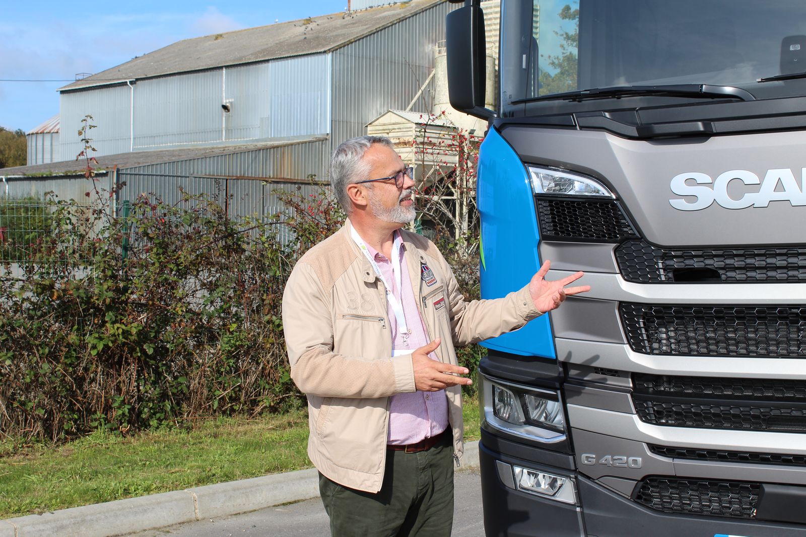 Représenté par David Quéro et Jean-Marc Le Breton, Scania était aussi à la station de Moréac avec un tracteur routier au GNC. Le G420 exposé était aux couleurs de la filiale TEPS, floqué : « Le groupe Eonnet s’engage pour la planète - Je roule au gaz naturel ».