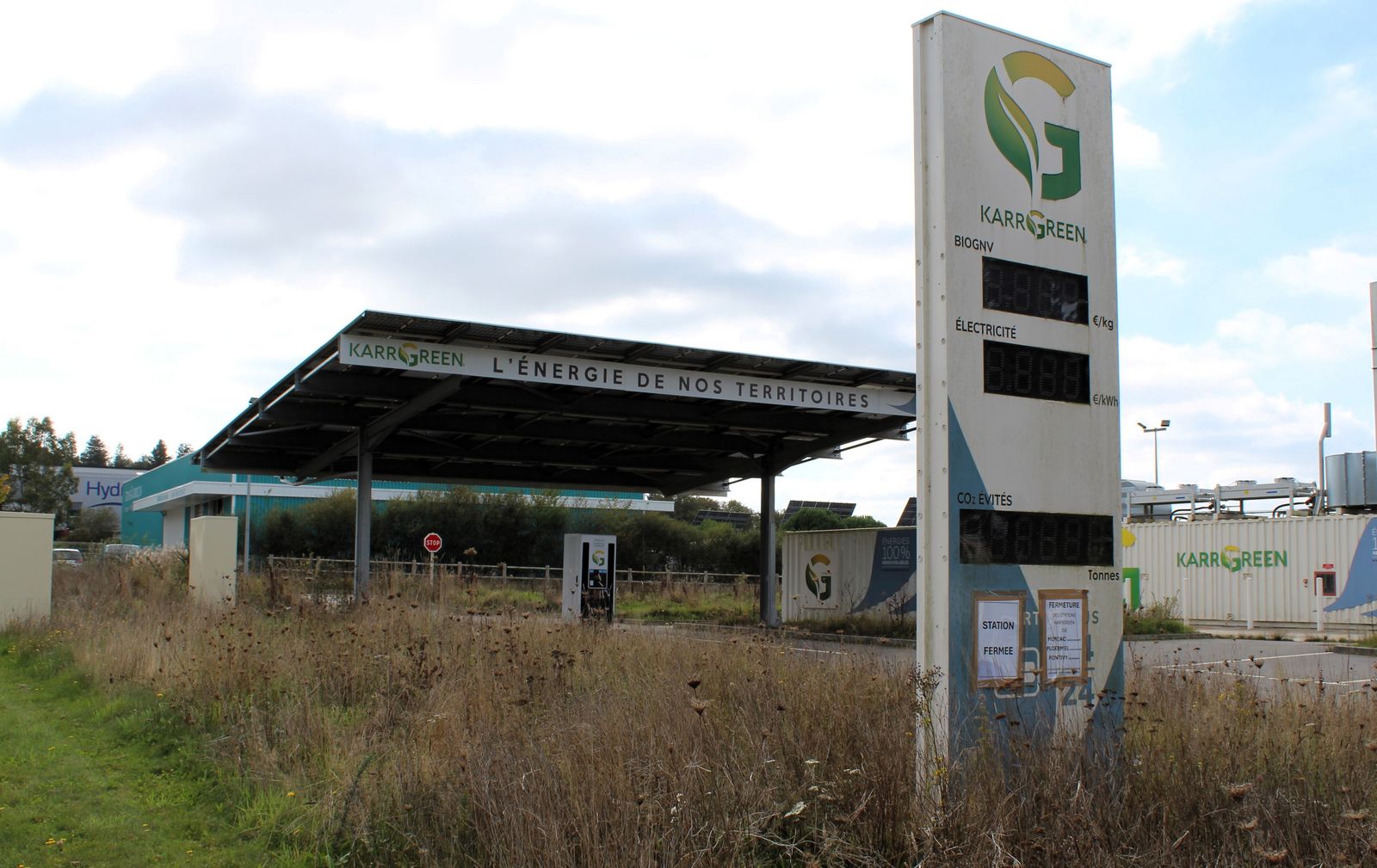 Plusieurs invités nous ont confié l’existence d’un projet pour rouvrir également l’ancienne station KarrGreen de Ploërmel. Mais il est encore trop tôt pour en parler.Quoi qu’il en soit, comme elle se trouvait sur le chemin de notre retour, nous n’avons pu résister à l’envie d’aller constater à quoi ressemble le site aujourd’hui en friche où nous étions présents début juillet 2021. Sous le totem éteint et défraîchi, une feuille plastifiée A4 signale « Station fermée », une autre précisant que c’est aussi le cas pour celles de Pontivy et Moréac, mais pas pour le site historique de Liger à Locminé, toujours accessible.