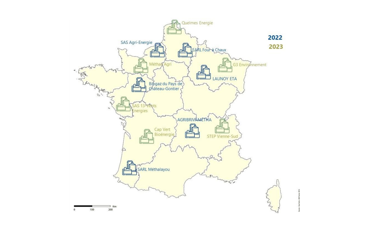 Emplacement des méthaniseurs sélectionnés dans l’étude Aqametha