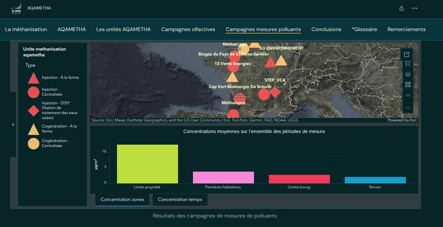 Une datavisualisation qui reprend l'intégralité des mesuresA la lumière de ces résultats, des préconisations sont effectuées à l’intention des exploitants et des porteurs de projet de méthanisation, avec un accent particulier mis sur la communication à destination des élus et riverains. Première brique de cet effort, un outil interactif de mise à disposition de la totalité des informations recueillies est accessible en ligne.