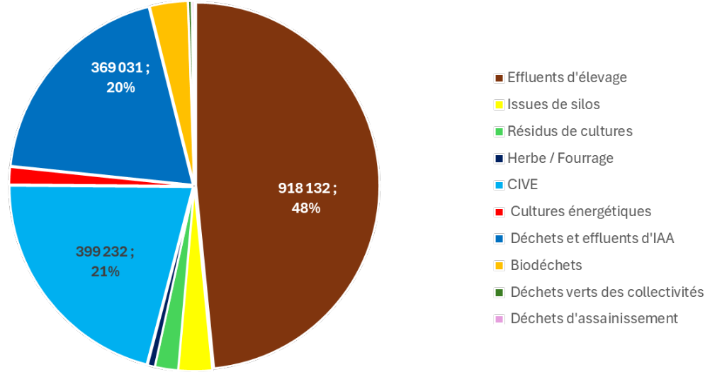 Répartition des apports en méthaniseur en 2023 pour la région Nouvelle-Aquitaine.